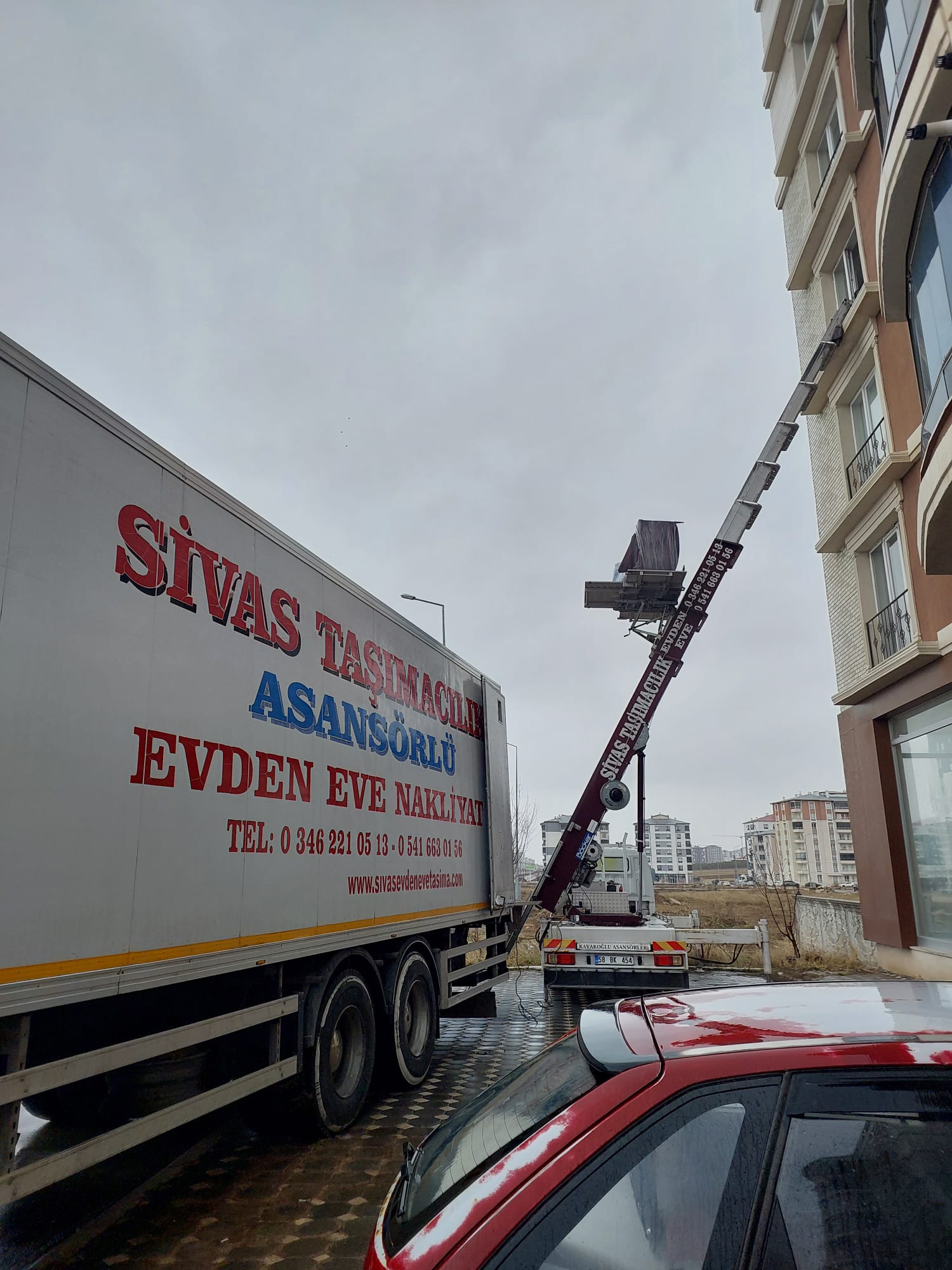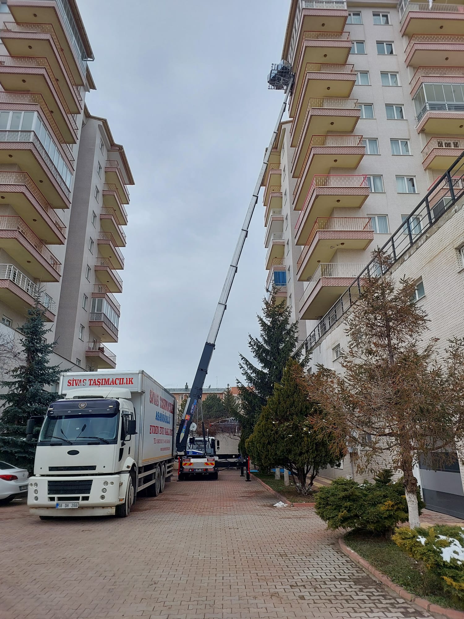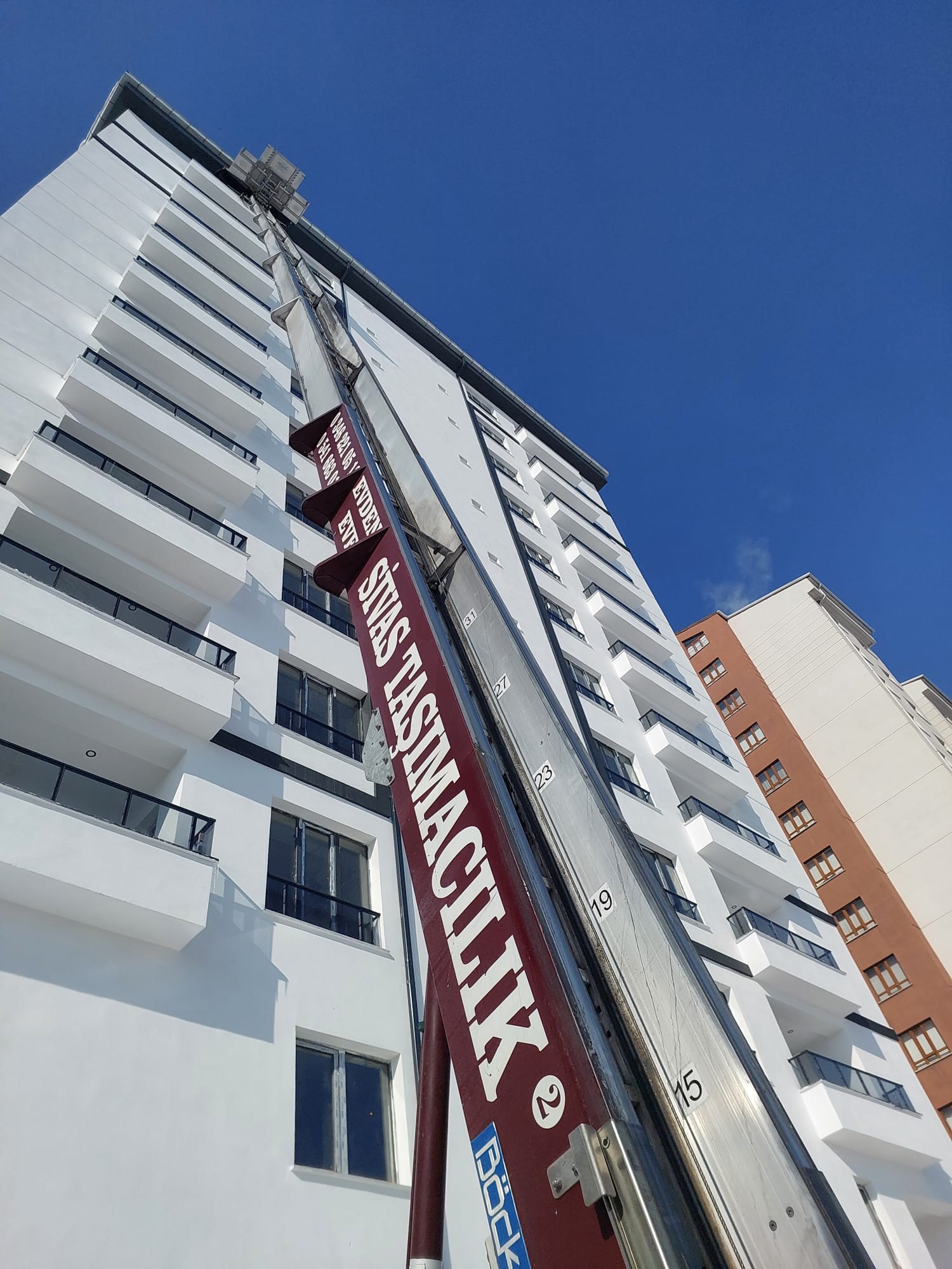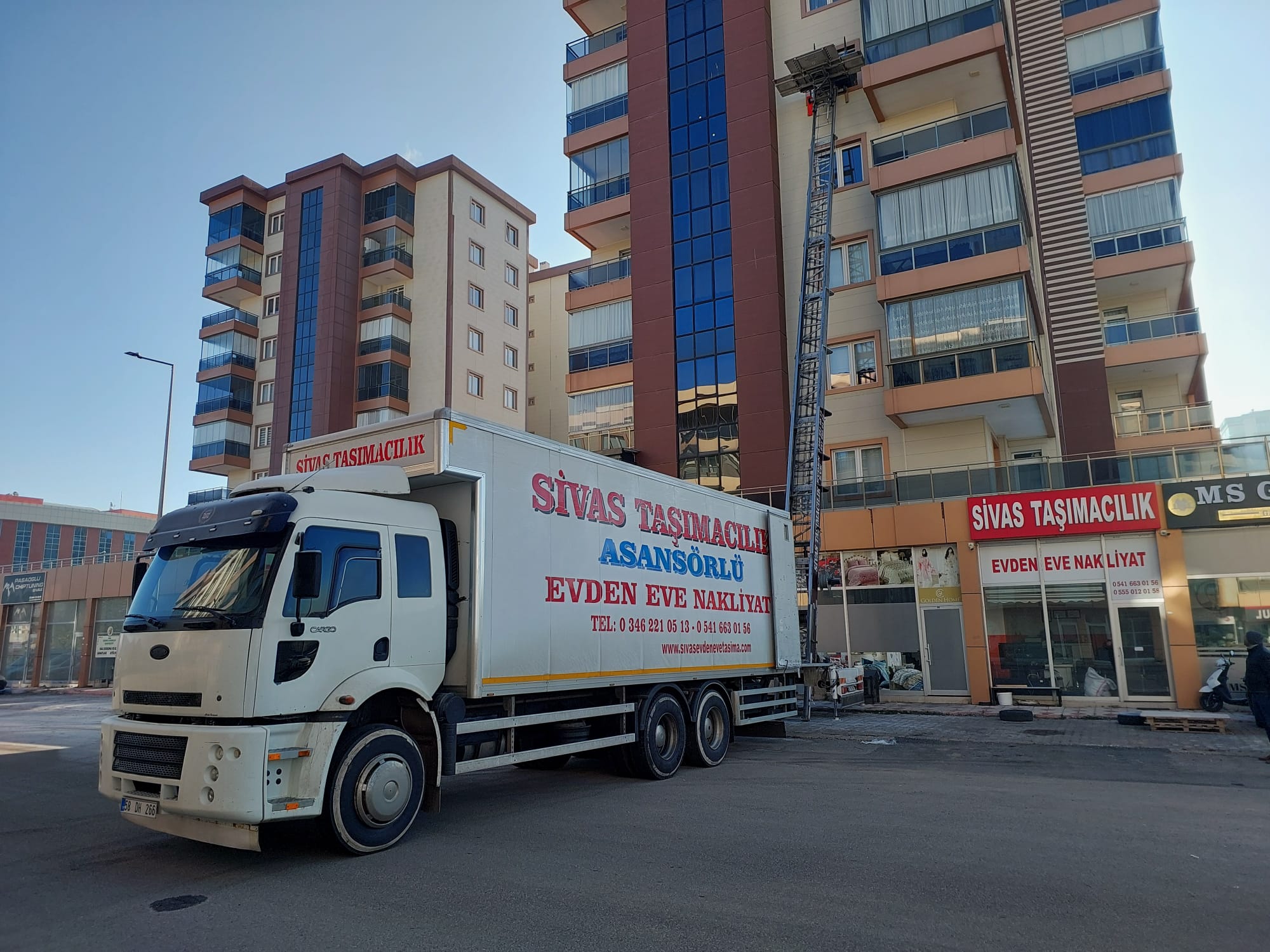 Sivas’ın en yüksek binalarına dahi ulaşabilen teknolojik parkurumuzla, 15. kata kadar her türlü yükleme ve boşaltma işlemini sorunsuzca yapıyoruz.